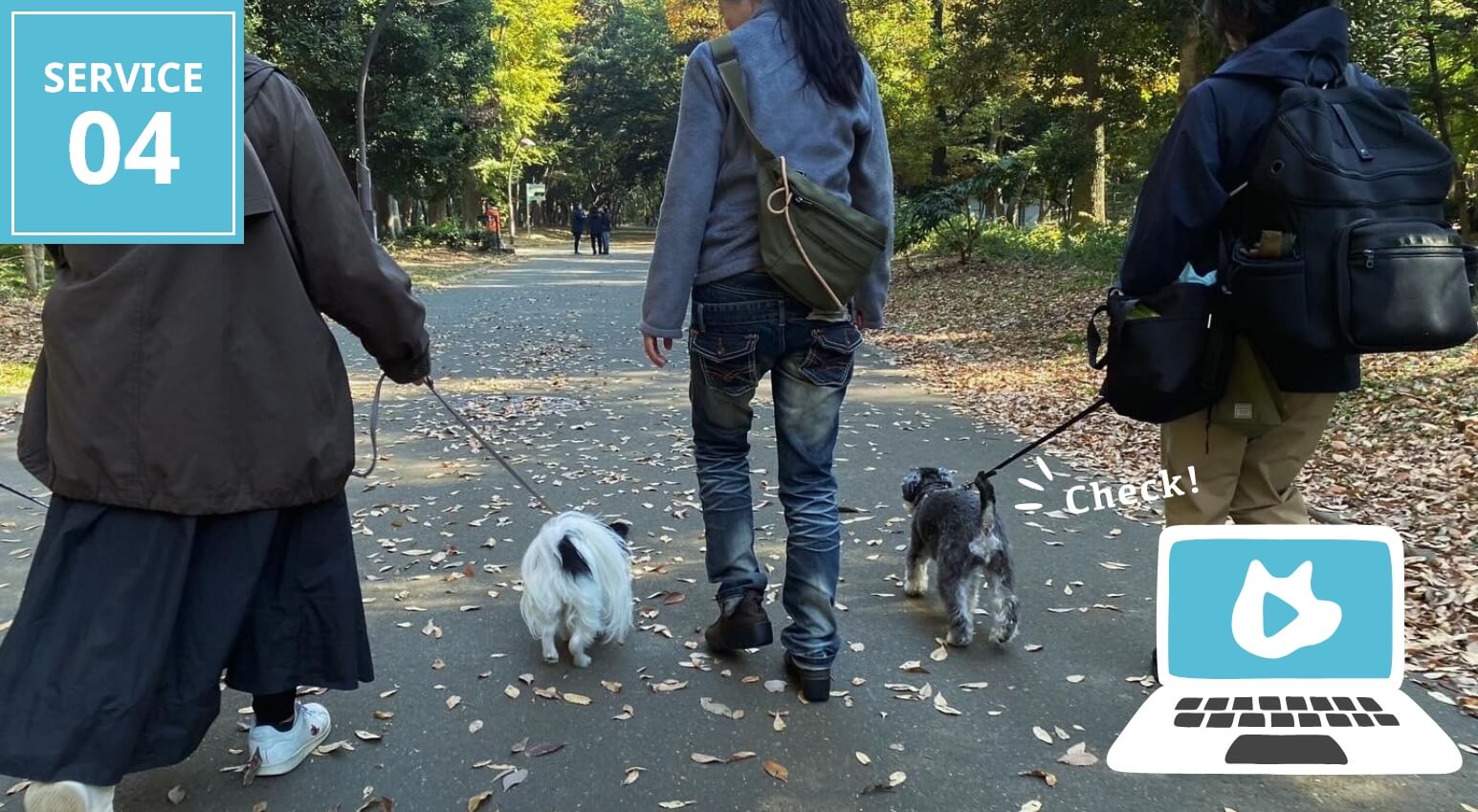 問題行動の改善はもちろん、飼い主さまの不安を軽くし、“犬と人が笑顔で暮らせる毎日”をサポートします。