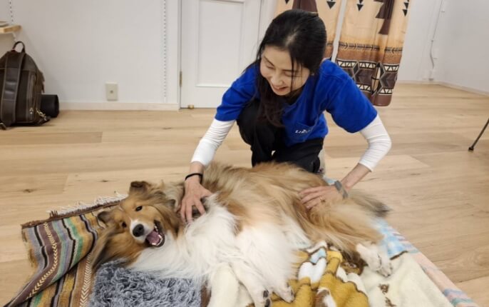 シニア犬やケガをしたワンちゃんのために、痛みをやわらげる整体ケアも出張で対応可能。